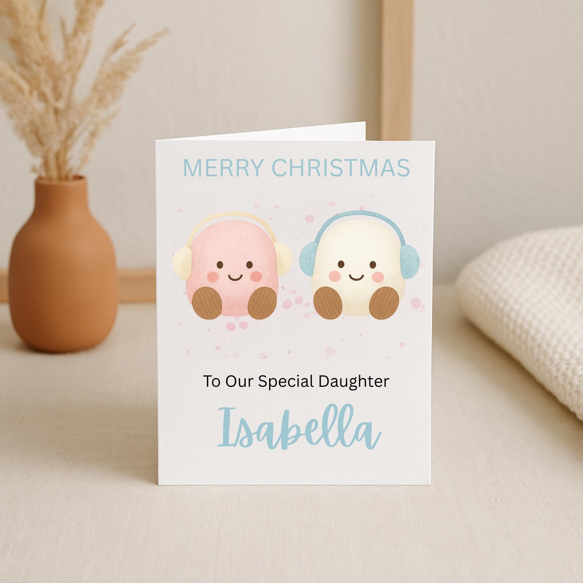 Personalised Christmas Card for Daughter, Cute Jellycat Inspired Card, Handmade Xmas Card, Kawaii Christmas Card, Kids Holiday Card